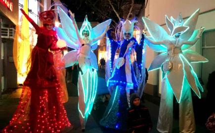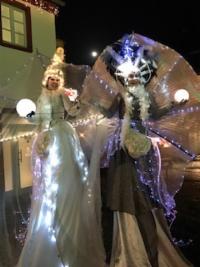 Mit GAGE aus Frankfurt haben wir eine magisch musikalische Geigen-Stelzenshow, die Kryotaklas-Show. Zauberhafte Stimmung, magische Lichtkostüme mit handgemachter und Live-Musik.