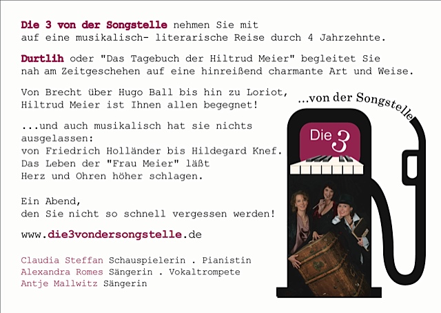 Entdecken Sie mit uns das Leben der Hiltrud Meier mit Texten und Chansons der 20er bis 40er Jahre...